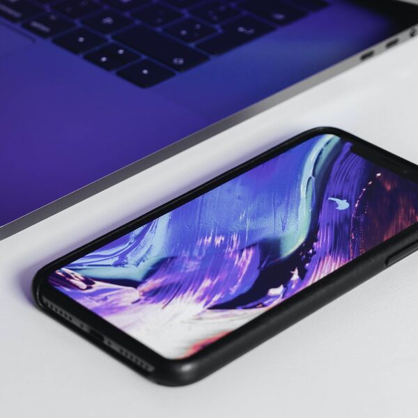 Smartphone mit lila Hintergrundbild Smartphone mit lila Hintergrundbild